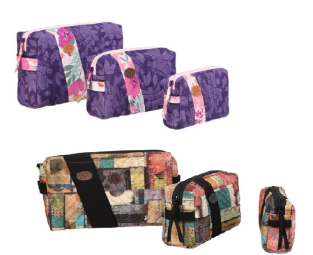 Pretty and practical, these zippered bags with side handles and diagonal borders are quick and easy to make.